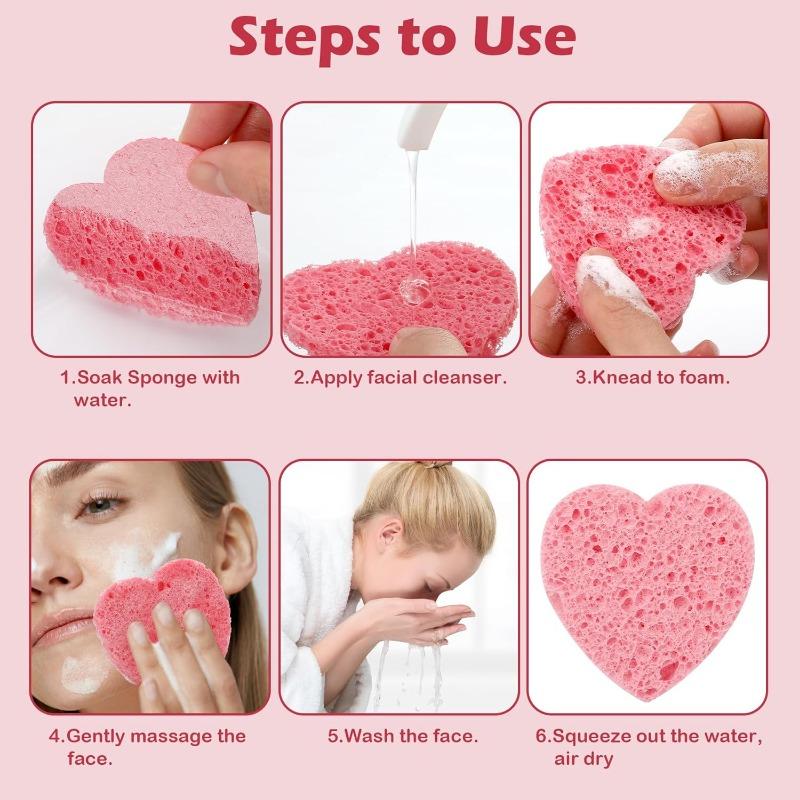 108-Count Compressed Facial Sponges for Estheticians – Cosmetic Spa Face Cleansing & Exfoliating Pads, Fan Brush Makeup Removal Sponges (Pink Heart)