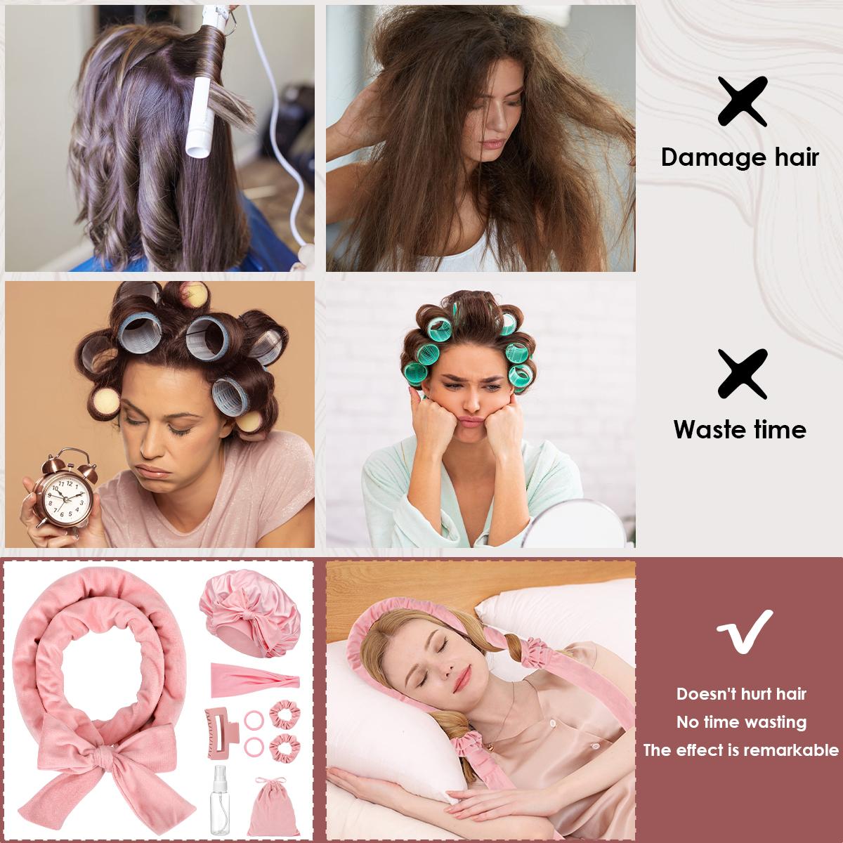 - 【NO-HEAT HAIR CURLERS】 Our overnight curls headband creates healthy, natural waves without heat or chemicals. It reduces hair damage, prevents split ends, and hair loss. Perfect for lazy girls and women who prioritize hair health.