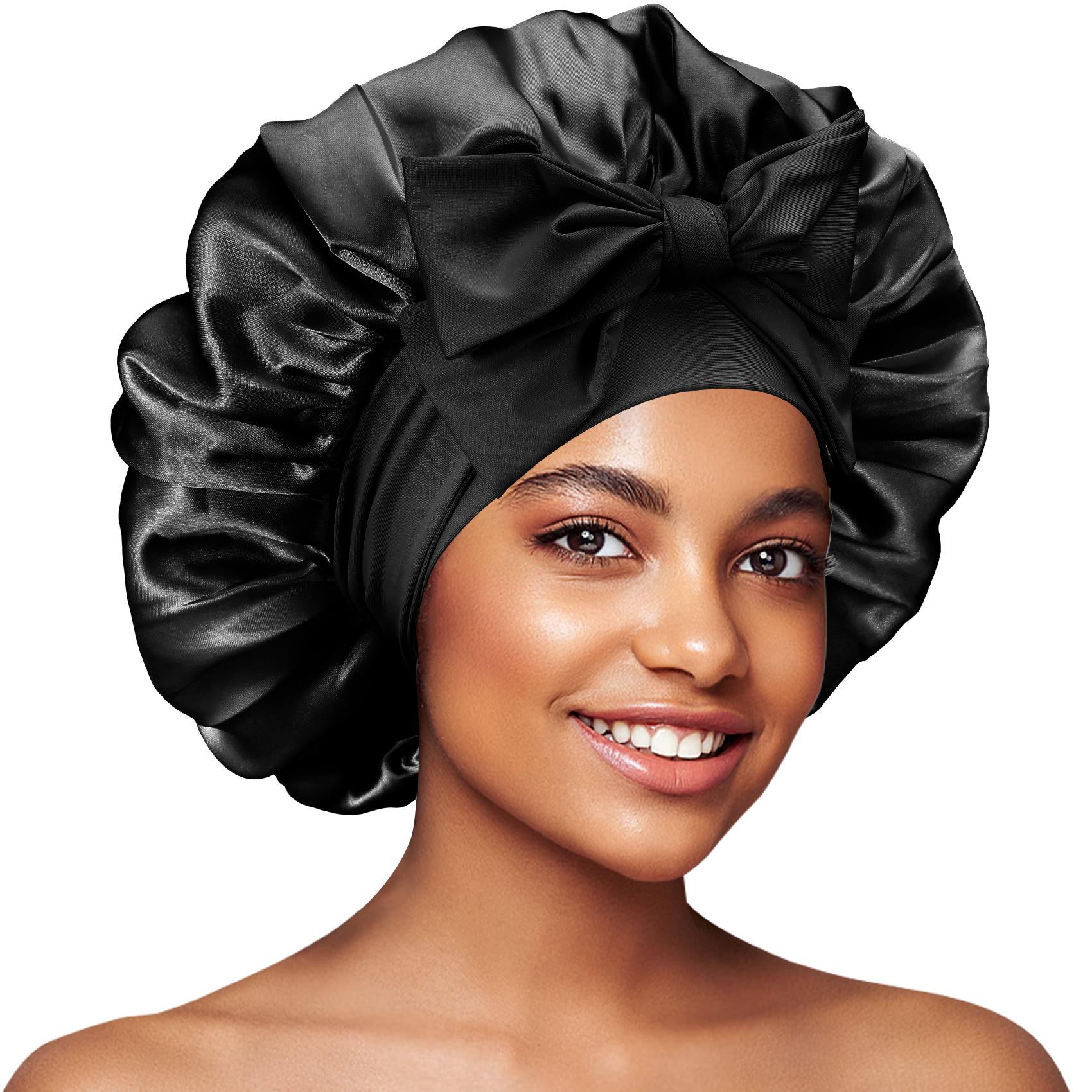 - 【DOUBLE LAYERS OF SILKY SATIN】This reversible satin bonnet for sleeping has 2 layers of fade resistant satin fabric,both side smooth silk, making it thick and high quality to lock your leave-in oil inside over night. No color or liquid will leak to stain beddings.