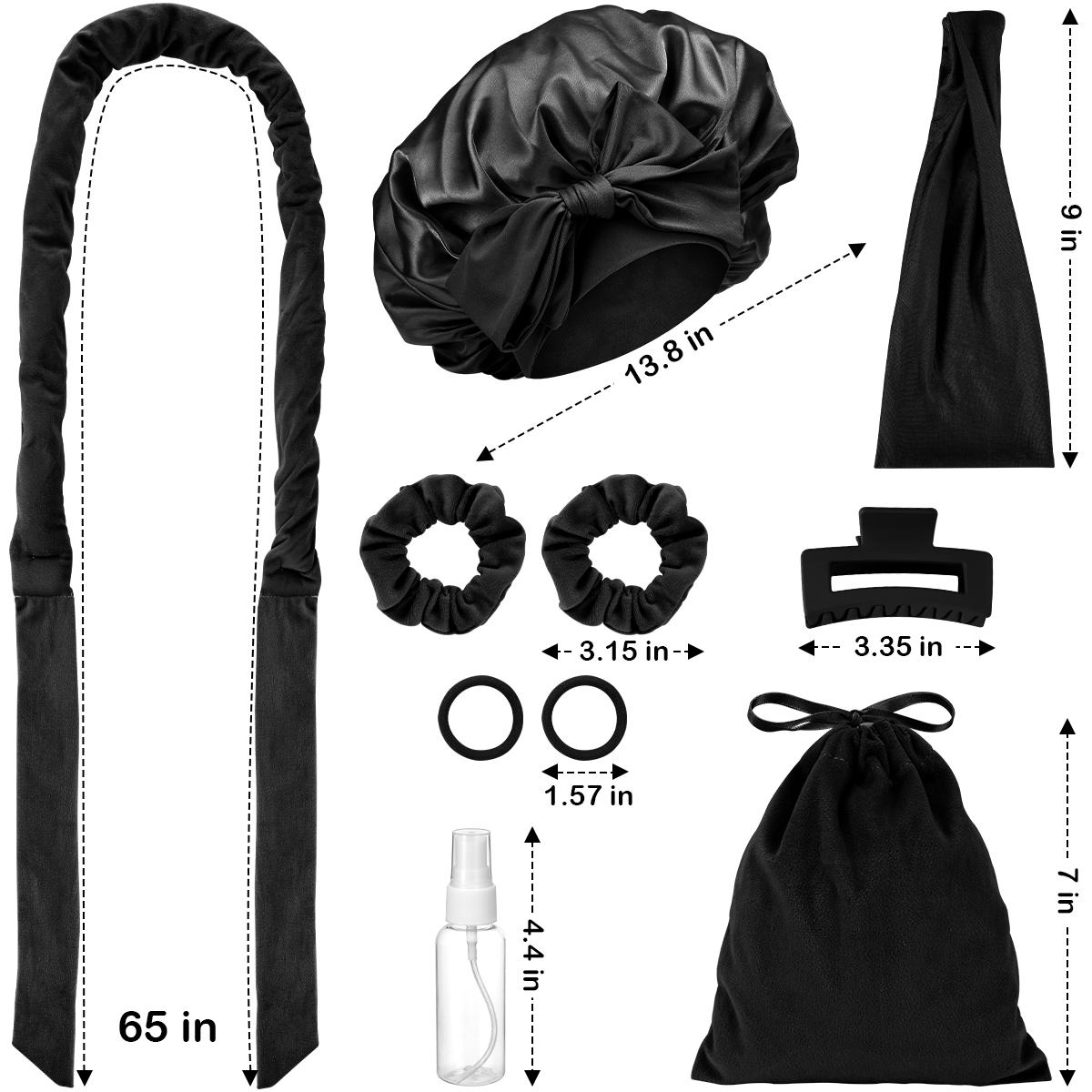 - 【WOMAN GIFT SET】 Our hair curling set includes 10 items: a 65-inch velvet headband, 2-layer satin hair bonnet, yoga strap, hair clip, 2 velour ties, 2 elastic ties, a velour bag, and a spray bottle. Packaged in an aircraft box, it's a perfect gift for family, friends, and colleagues on various occasions like New Year, valentines day, birthdays, and Mother's Day.